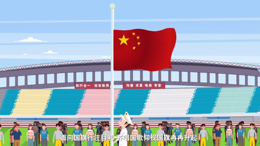 升旗仪式是学校对学生进行爱国主义教育和集体主义教育的重要方式。在此重要场合,同学们需衣着得体,严肃端庄,齐唱国歌行注目礼,应通过规范礼仪行为来表达对国旗、国歌的尊重。